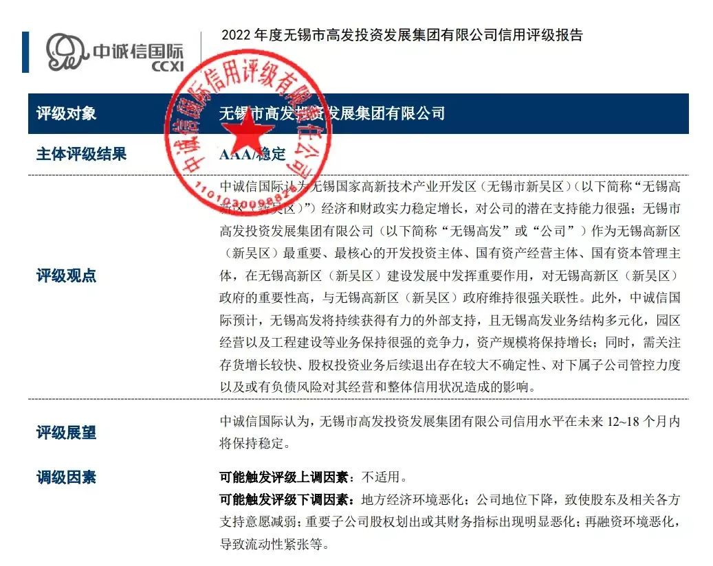 区级国资公司获AAA评级,较为难能可贵,在全国亦属于最先进行列,高发集团同时获得中诚信国际、中证鹏元两家评级机构评定,更彰显了对高新区高质量发展与未来前景的高度认可。