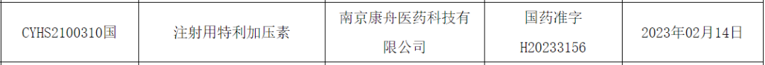 近日,江宁高新区企业康舟医药芝雪康®(注射用特利加压素)成功获批上市,该产品按化药注册分类新四类申报并获批,视同通过一致性评价。
