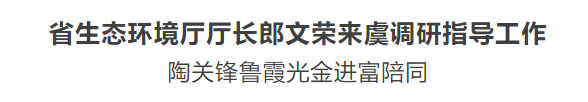 10月12日下午,省生态环境厅厅长郎文荣来虞调研指导工作。省生态环境厅副厅长竺恒峰,省核与辐射站站长叶俊,市委常委、常务副市长陶关锋,副市长、区委书记鲁霞光,区委副书记、区长金进富,区委常委、杭州湾上虞经济技术开发区党工委书记孙海明,副区长阮程华分别陪同。