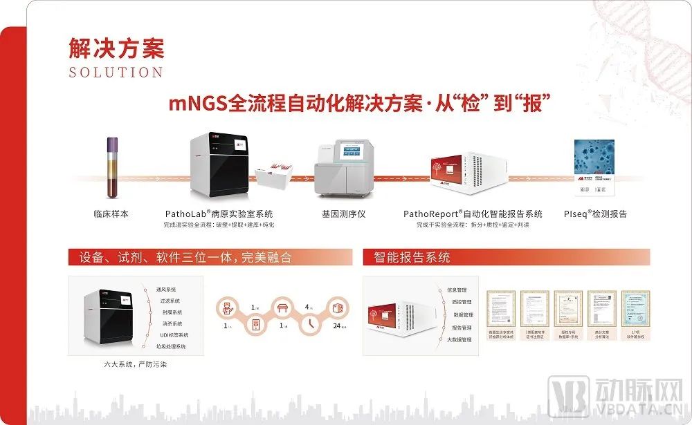 2021年上半年,公司全自主开发完成国内首套PathoLab®高通量病原实验室系统[浙杭械备20210912号],实现了样本处理、细胞破壁、核酸提取和文库构建的全流程自动化。使mNGS检测从3间屋、4种仪器、5人配备操作、6小时操作,精简到1人、1机、1桌和4小时完成,大幅降低了医疗机构实验室运行难度和成本。