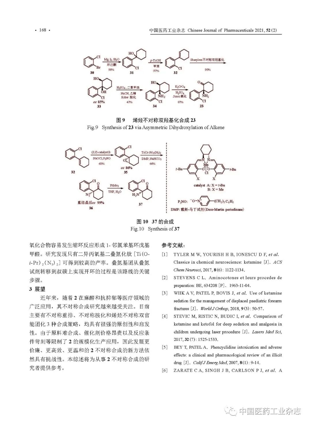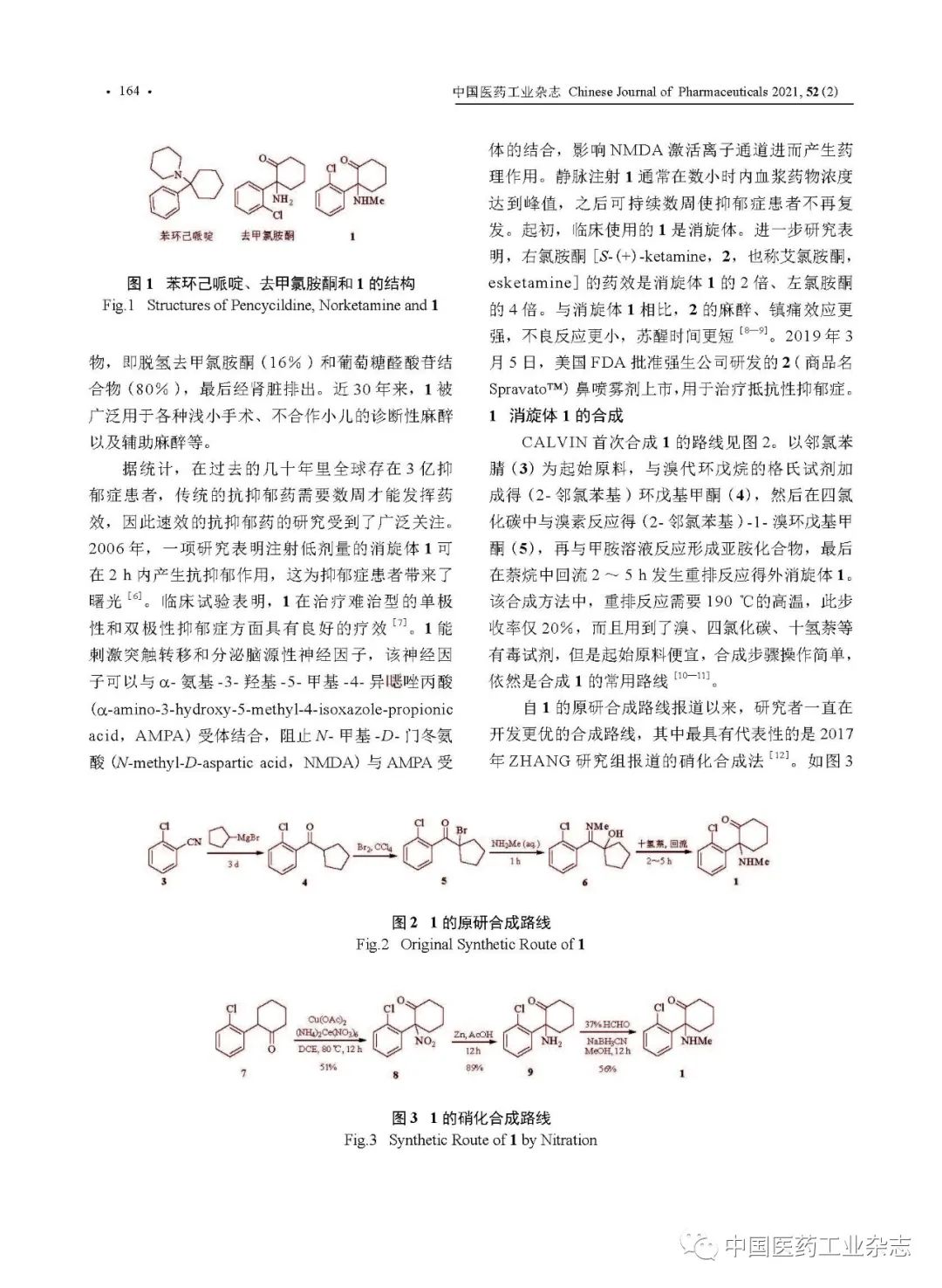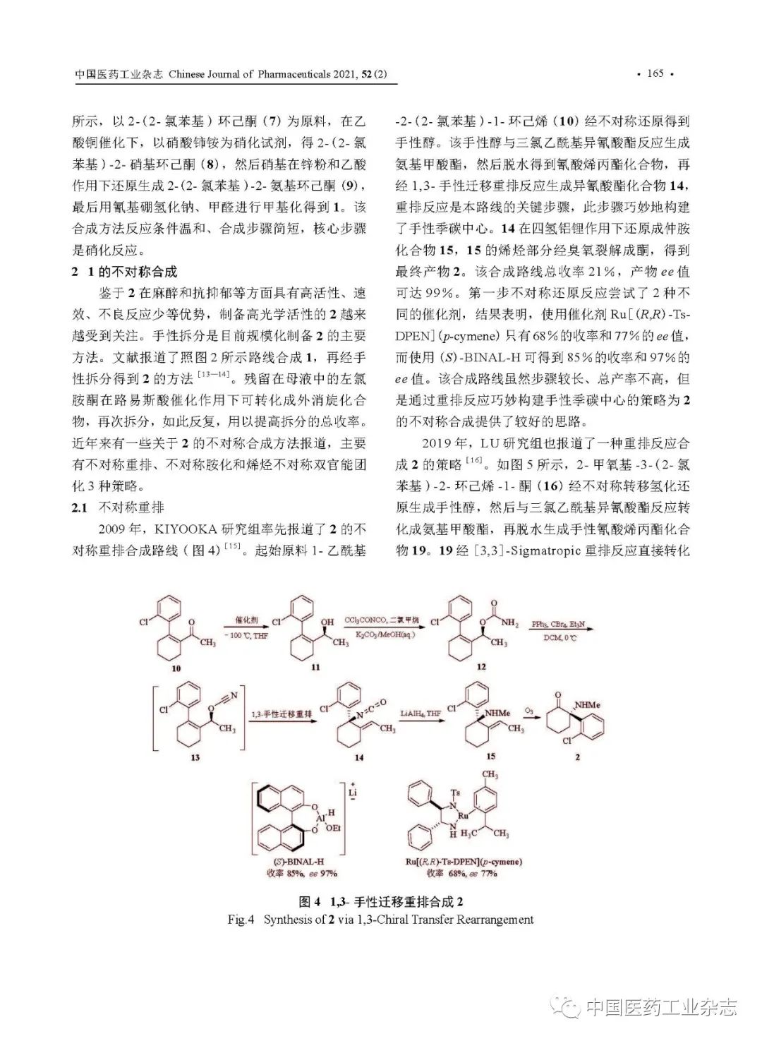 关键词:艾氯胺酮;去甲氯胺酮;麻醉药物;抗抑郁药;不对称合成