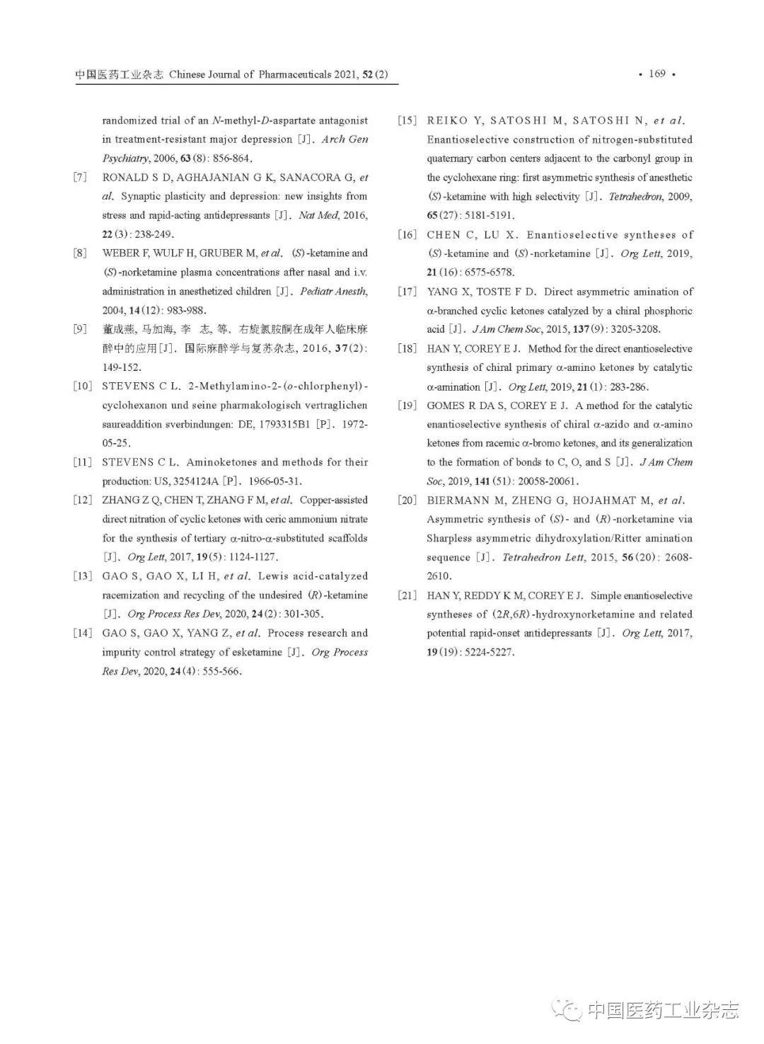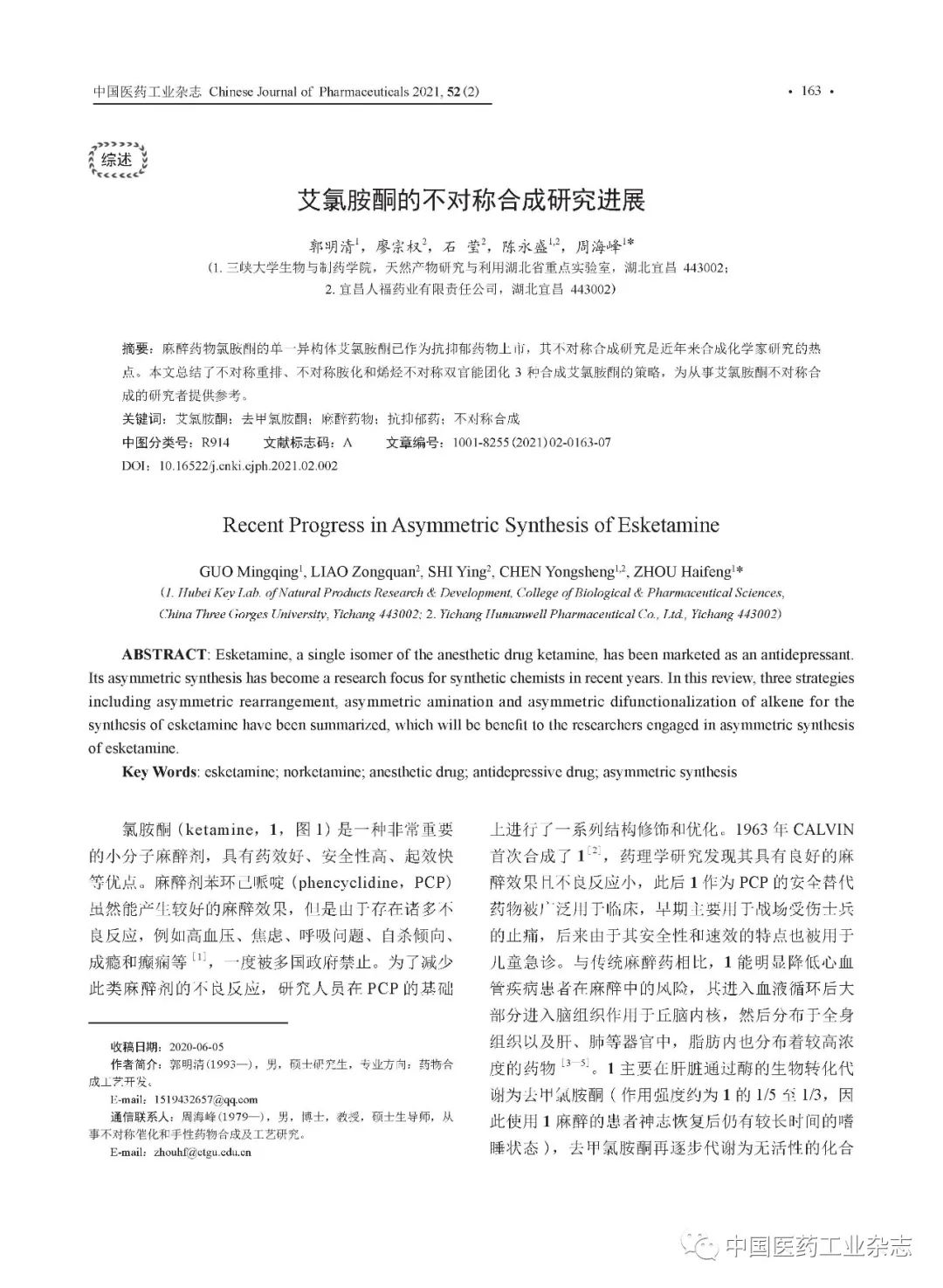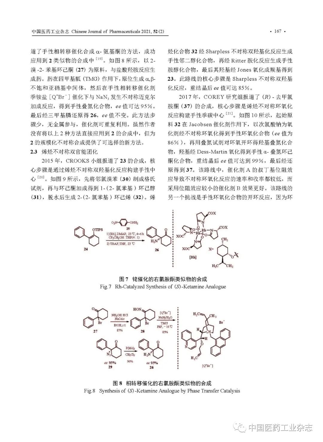 关键词:艾氯胺酮;去甲氯胺酮;麻醉药物;抗抑郁药;不对称合成