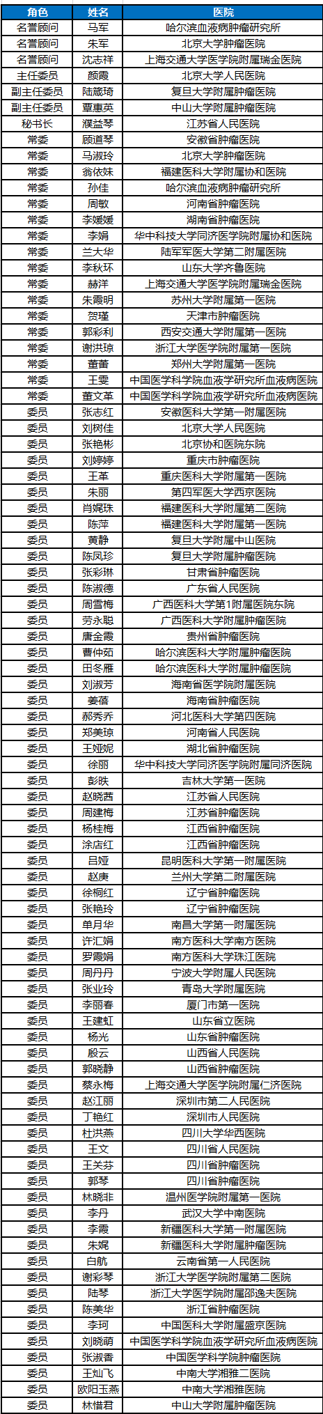 [附] CSCO抗淋巴瘤联盟护理学组人员名单(常委、委员排名不分先后,按照单位拼音首字母排序)