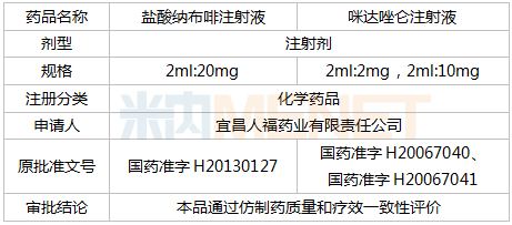 4月7日,人福医药发布公告称,其控股子公司宜昌人福药业的盐酸纳布啡注射液和咪达唑仑注射液以补充申请获批过评。此外,盐酸美金刚缓释胶囊的ANDA获批。米内网数据显示,2019年中国公立医疗机构终端纳布啡注射剂销售额已接近4亿元,咪达唑仑注射剂销售额突破6亿大关。