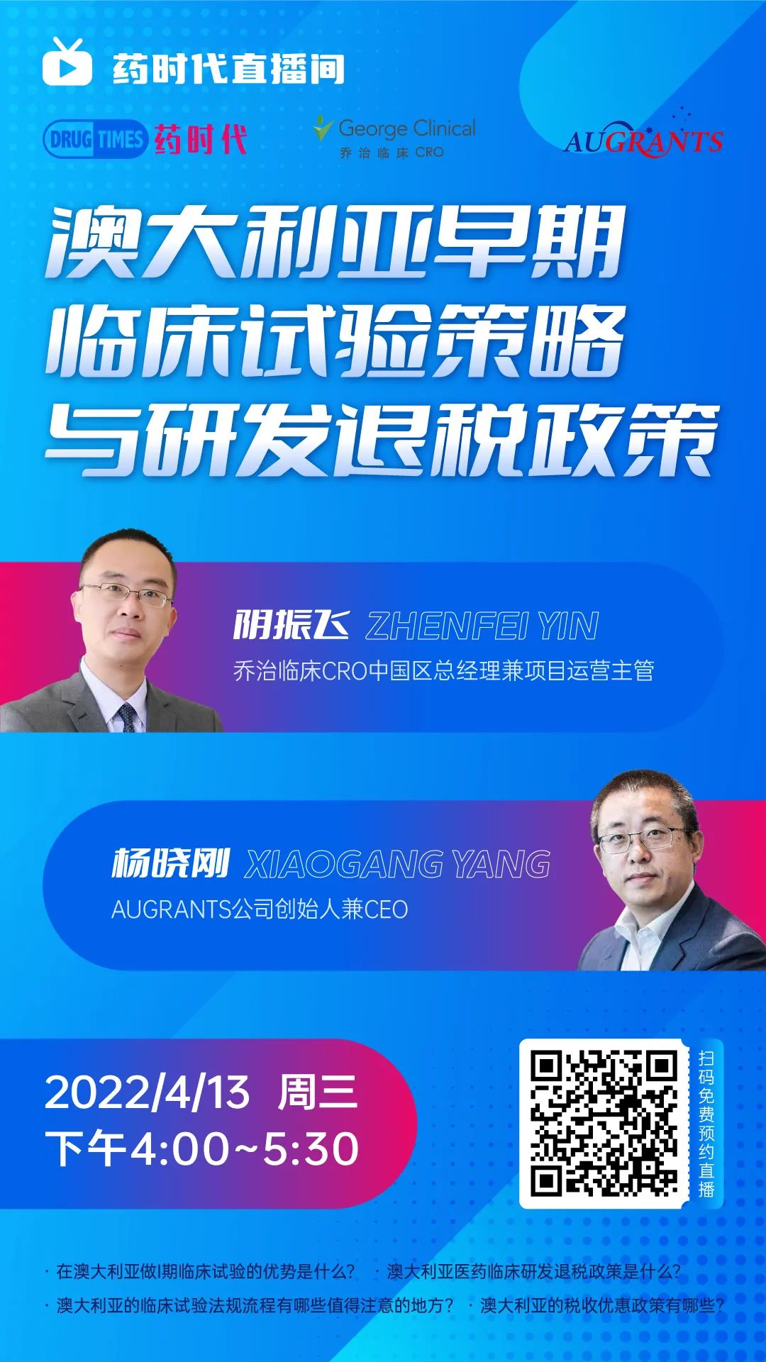 活动主题:澳大利亚早期临床试验策略与研发退税政策