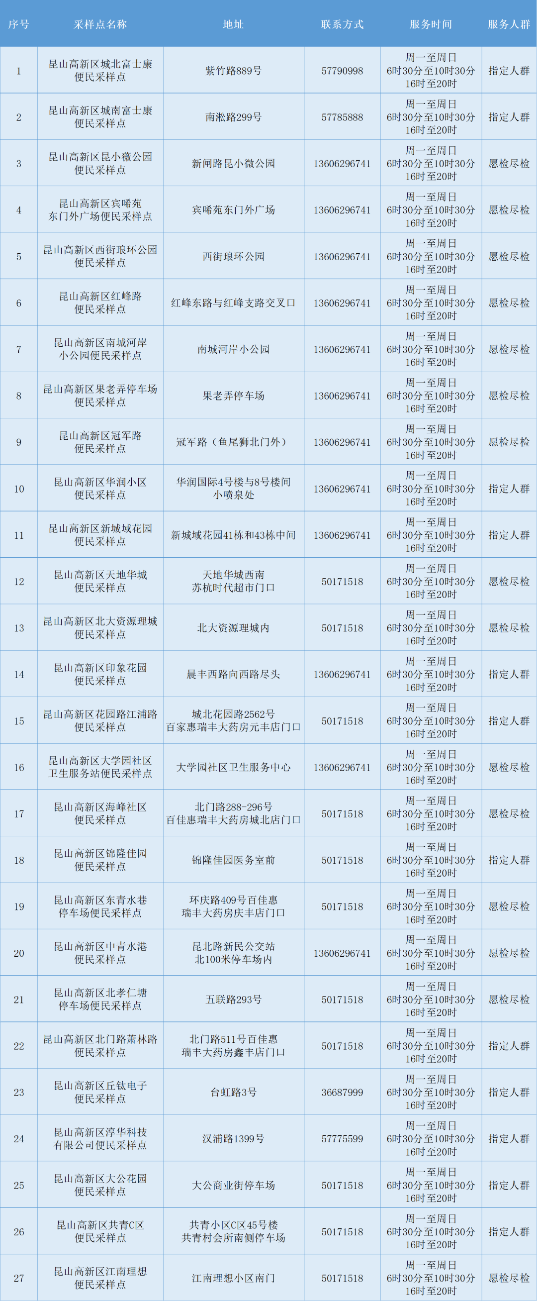 根据疫情防控需要,决定于11月29日(星期二)在昆山高新区开展区域核酸检测,具体如下: