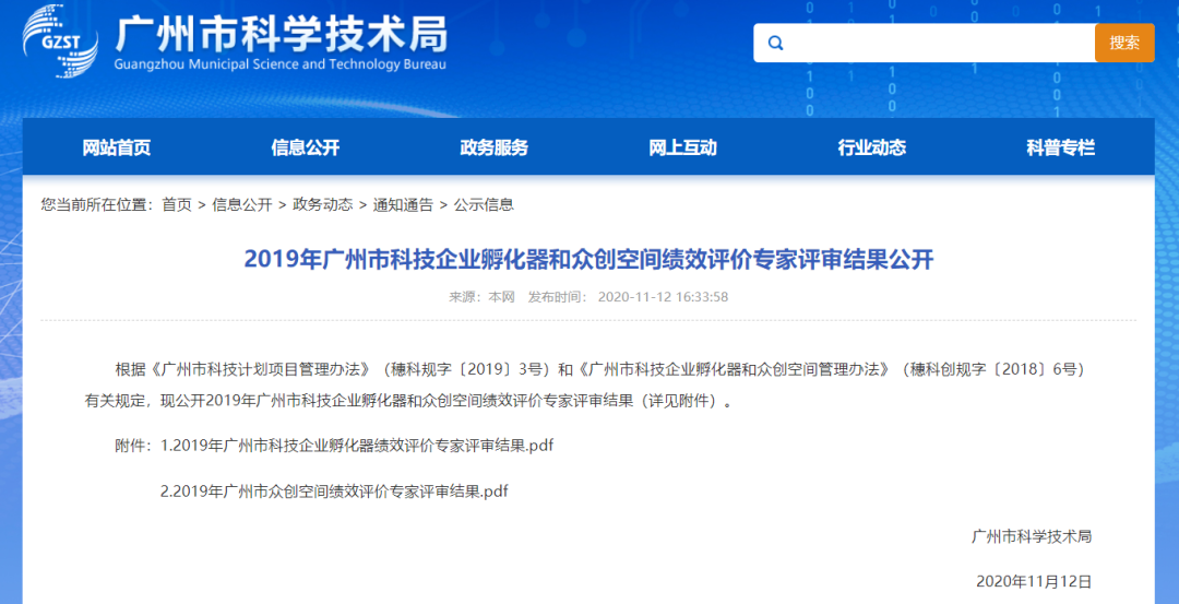 11月12日,广州市科学技术局发布了《2019年广州市科技企业孵化器和众创空间绩效评价专家评审结果公开》的通知。