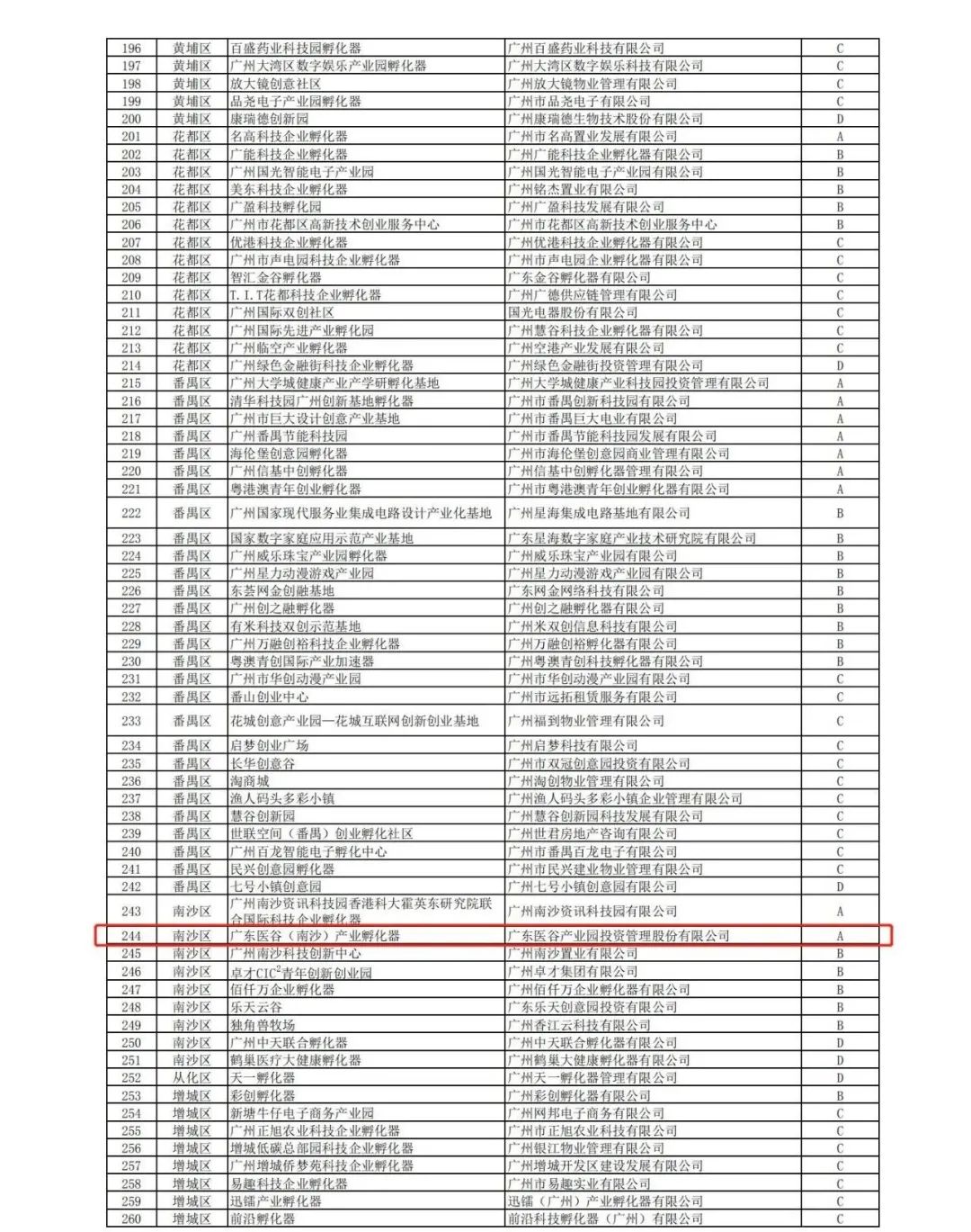 广东医谷在2019年广州市科技企业孵化器绩效评价中获得A级评价。
