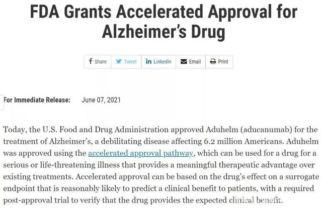 这是自2003年以来,FDA批准的首款AD新药,也是自阿尔茨海默病被命名100多年来,首款获批的疾病修正类药物。