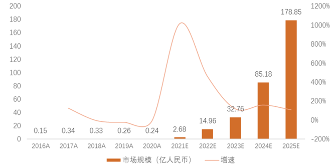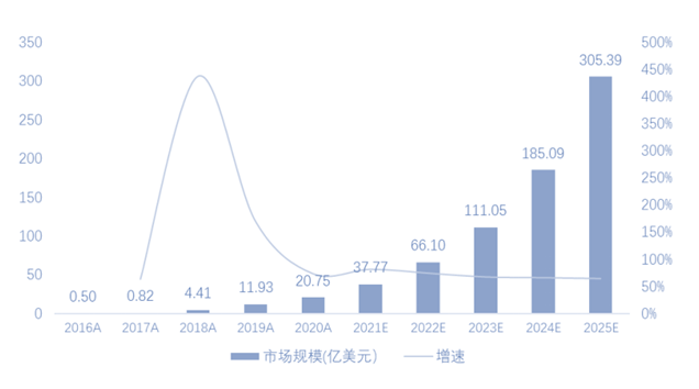 2016年至2020年,全球CGT市场从0.5亿美元增长到20.8亿美元,复合年增长率为153%。根据Frost & Sullivan数据与预测,2020年全球基因治疗市场规模达20.8亿美元,2016-2020年CAGR为153.3%,预计到2025年全球基因治疗市场规模将达到305.4亿美元,2020-2025年CAGR高达71.2%。