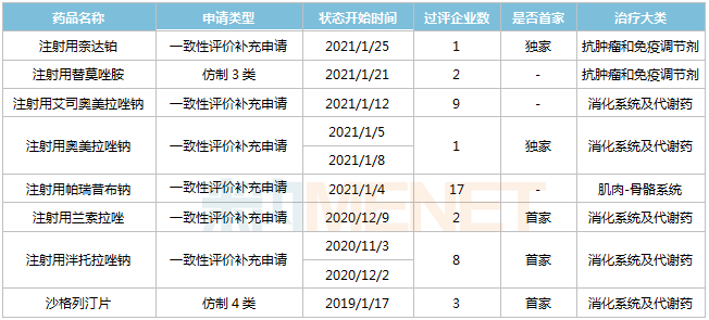 来源:米内网MED2.0中国药品审评数据库