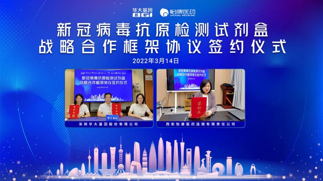 3月14日,怡康医药与华大基因签署新冠病毒抗原检测试剂盒战略合作框架协议,旨在大力推广新冠抗原检测的可及性,助力疫情防控工作。此签约仪式通过线上腾讯会议的形式展开,华大基因CEO赵立见、怡康医药总经理王彤及其他7家连锁代表参加本次签约仪式,华大基因副总裁彭欢欢主持。