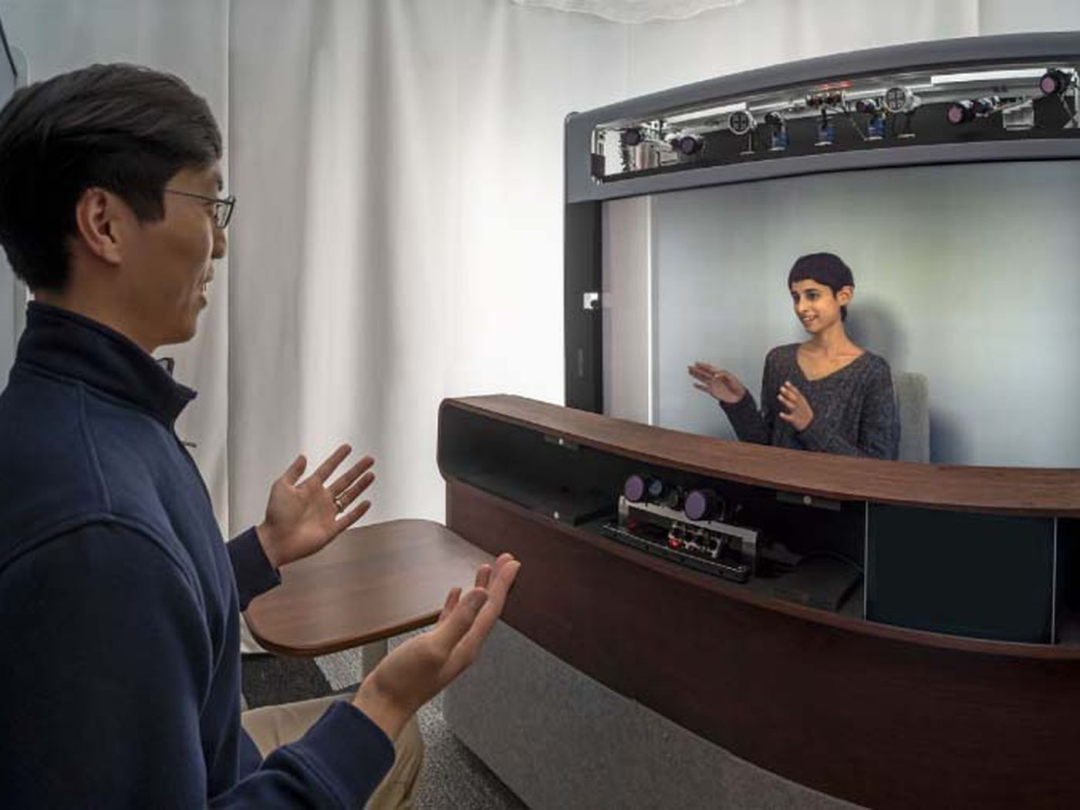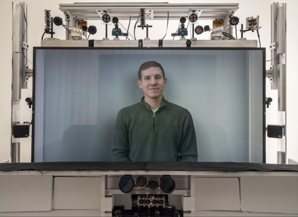 显示器是一个 65 英寸、8 K、60 Hz的自动立体透镜面板,就是在它上面生成真人大小的裸眼3D视图化身。