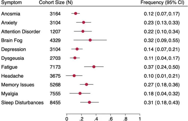 Premraj L, Kannapadi NV, Briggs J, et al. Mid and long-term neurological and neuropsychiatric manifestations of post-COVID-19 syndrome: A meta-analysis [published online ahead of print, 2022 Jan 29]. J Neurol Sci. 2022;434:120162. doi:10.1016/j.jns.2022.120162