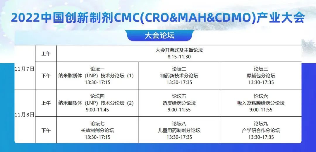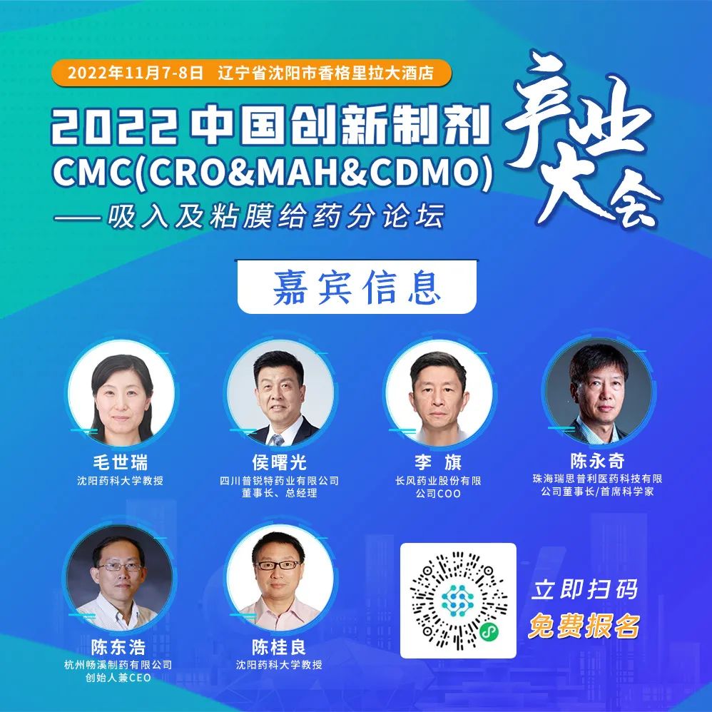 大会主题:2022中国创新制剂CMC(CRO&MAH&CDMO)产业大会