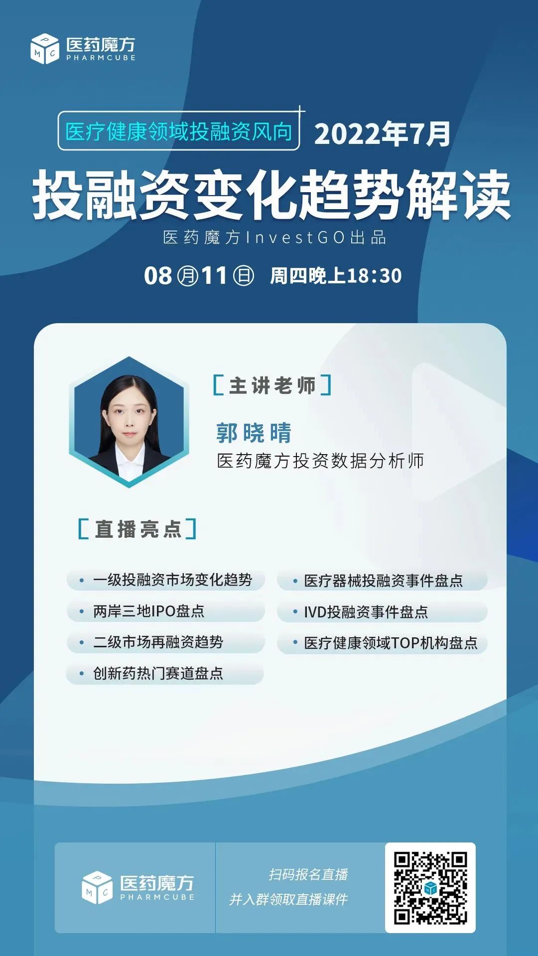 本次直播报告由医药魔方InvestGO团队撰写推出,InvestGO旨在打造中国医疗健康领域投融资风向标。