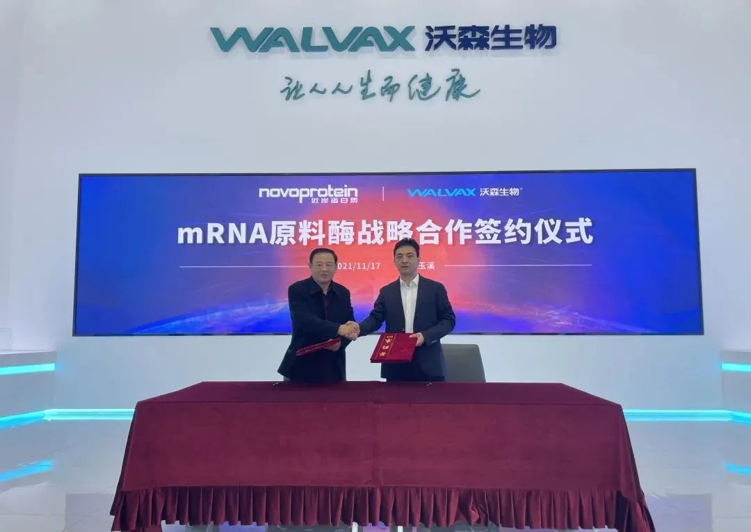 2021年11月17日,苏州近岸蛋白质科技股份有限公司(以下简称“近岸蛋白质”)与云南沃森生物技术股份有限公司(以下简称“沃森生物”)的控股子公司玉溪沃森生物技术有限公司(以下简称“玉溪沃森”)在玉溪举行了战略合作签约仪式,双方就沃森生物mRNA疫苗项目原料酶的供应达成深度战略合作。未来,近岸蛋白质将积极推进上游原料供应链建设,为沃森生物的国内首个 mRNA疫苗实现产业化奠定坚固的基础。