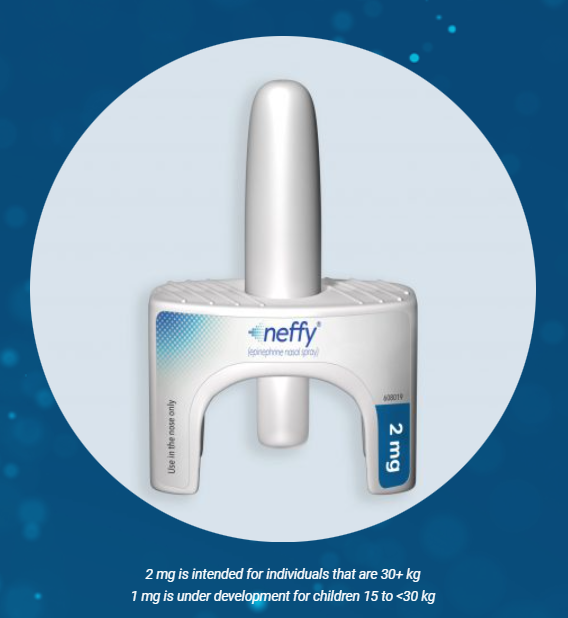 Neffy是一种肾上腺素鼻喷剂,采用了鼻吸收增强技术Intravail®。在出现过敏反应的紧急情况下时,相比于现有的肾上腺素自动注射器,Neffy更加容易使用。