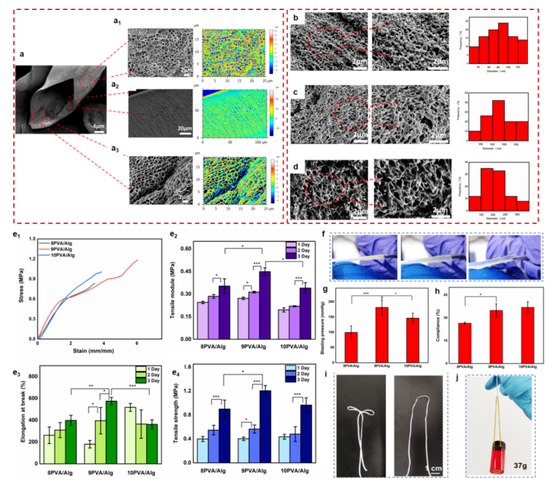 针对小直径人工血管的这些问题,太原理工大学生物医学工程学院教授黄棣团队开发了由聚乙烯醇和海藻酸盐的复合材料制备的人工血管。这种人工血管具备突出的力学性能、适当的顺应性以及可抗凝血等特性。