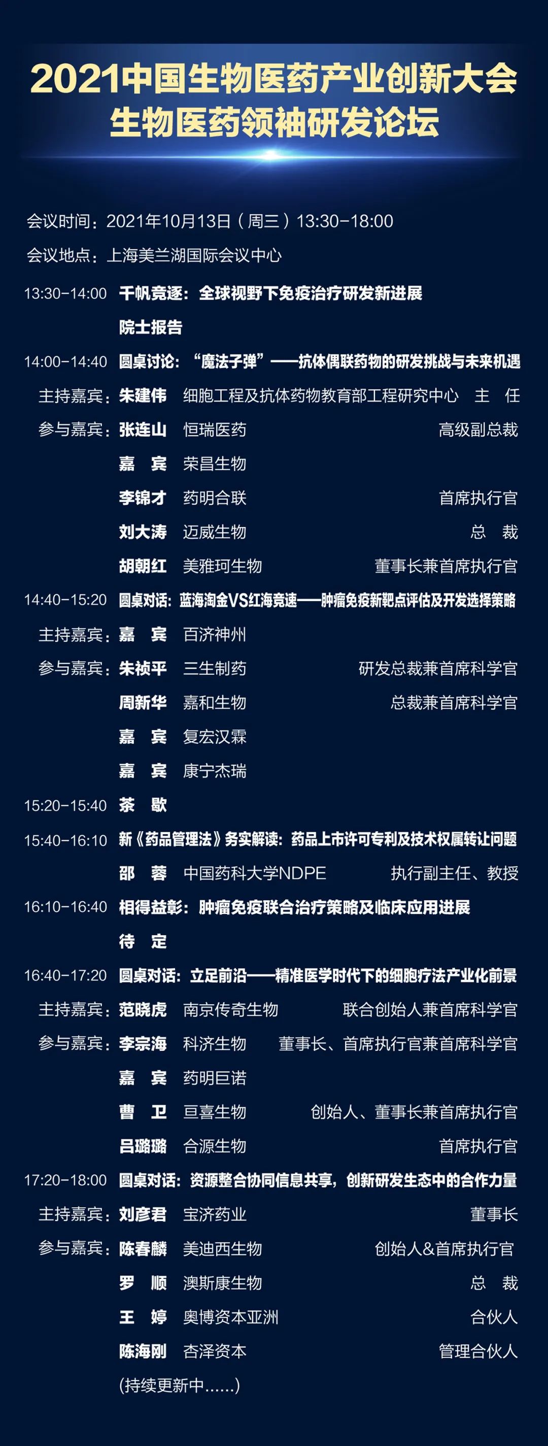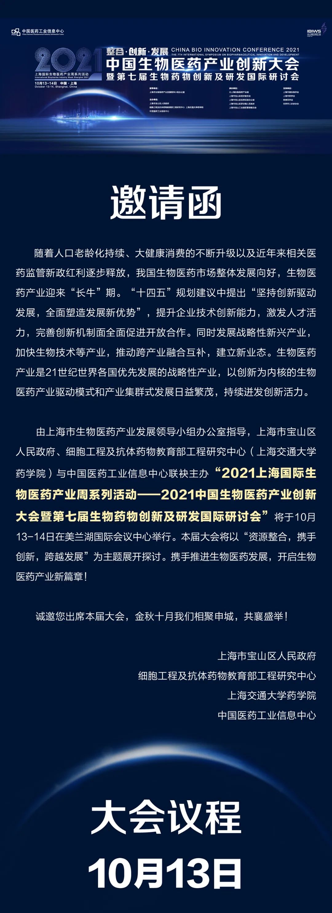 重磅议程首发,等你来撩 | 2021中国生物医药产业创新大会暨第七届生物药物创新及研发国际研讨会