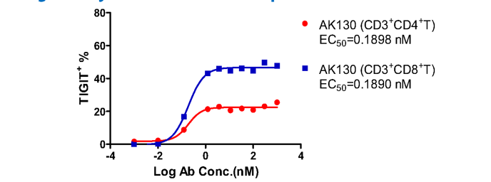 图 2. AK130 对于表达 TIGIT 的人 T 细胞的结合活性