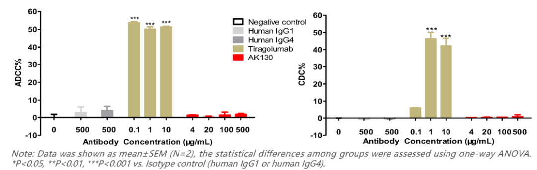 2、AK130 无 ADCC 或 CDC 活性,安全性佳,抗肿瘤效应强