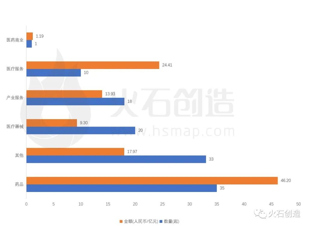 本月药品领域最为吸金,融资金额高达46.20亿元,占总融资金额的40.88%。从项目数量上看,其他领域也较为活跃。