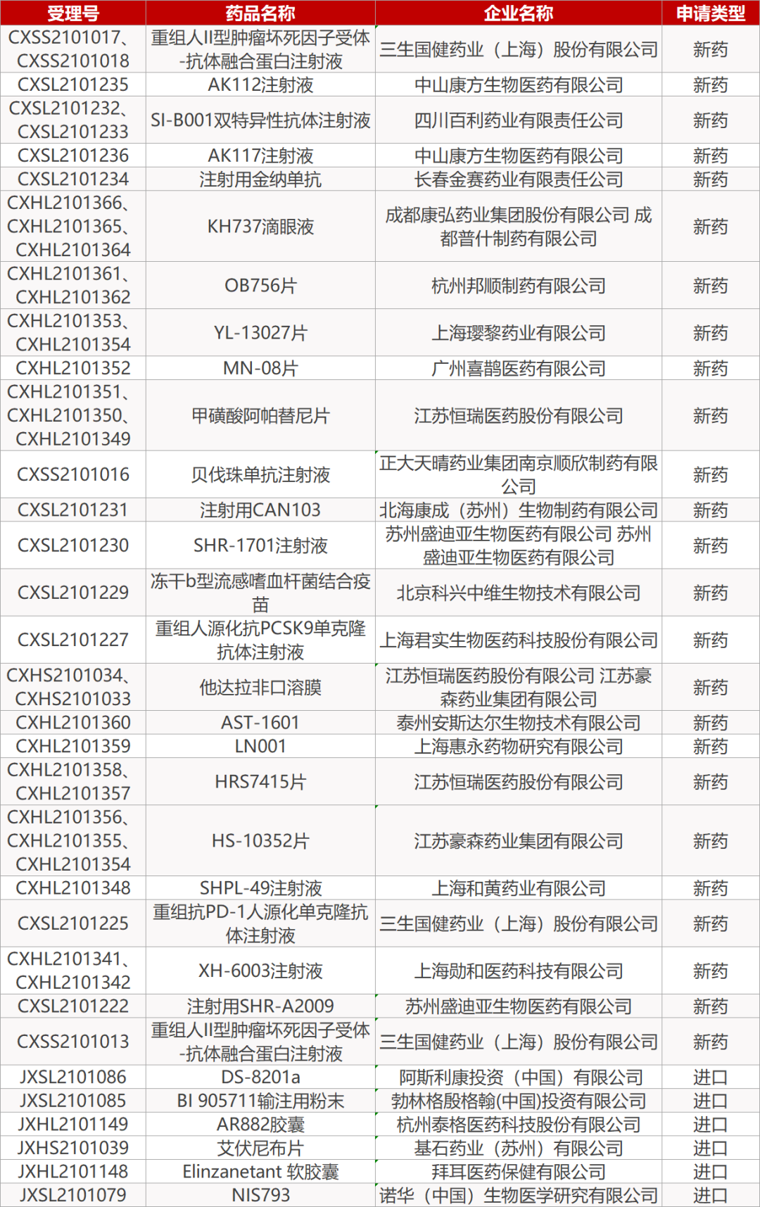 2.加科思JAB-21822国内启动临床。加科思药业自主研发的1类创新药JAB-21822在中国开展的I/II期临床首例患者给药。该项研究旨在评价JAB-21822用于KRAS G12C突变的晚期实体瘤的安全性、耐受性。JAB-21822是该公司利用变构抑制剂技术自主研发的一款小分子KRAS G12C抑制剂,目前正在中美同步展开针对非小细胞肺癌、结直肠癌和其他实体瘤的临床试验。