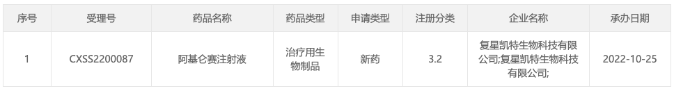 10 月 25 日,据 CDE 官网显示,复星凯特的阿基仑赛注射液新适应症申报上市(受理号:CXSS2200087),拟用于一线免疫化疗无效或在一线免疫化疗后 12 个月内复发的成人大 B 细胞淋巴瘤(r/r LBCL)。