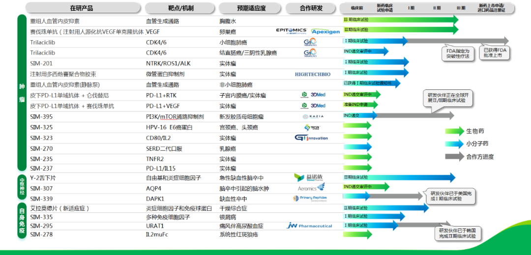 先声药业在研产品管线(资料来源:先声药业官网)