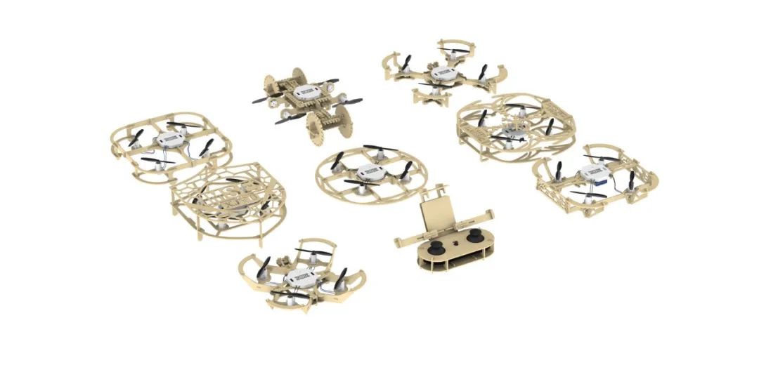 木喔的多功能木板拼装无人机是一系列木制机架的四轴无人机。它采用环保木板材质,由激光切割制造。用户只需要从木板上拆卸下结构零件,然后用手将其组装到无人机的机架上。将平面的木板材料通过榫卯结构拼接成无人机,不仅锻炼了动手能力,还能直观了解无人机的构造。此外,通过裁剪与调整木板拼接结构来改变无人机形状,加上涂色美化等操作,可以达到DIY无人机的创意开发学习目的。