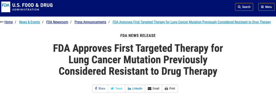 2021年05月28日,安进(AMGEN)宣布,美国FDA已加速批准KRAS G12C抑制剂Lumakras(sotorasib)上市,用于治疗既往至少接受过一次系统治疗的携带KRAS G12C突变局部晚期或转移性非小细胞肺癌(NSCLC)患者。这是全球首个获得批准的靶向KRAS突变的肿瘤治疗药物。