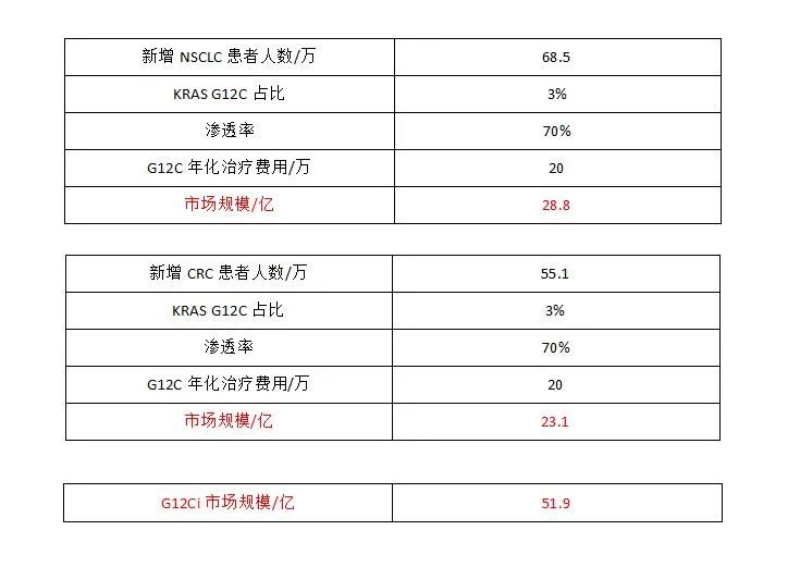由于国内尚未对CRC患者进行基因型分析,故采用国外研究数据,KRAS G12C阳性患者占CRC患者的3%左右;