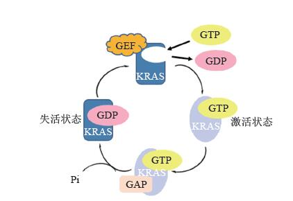 KRAS 蛋白(kirsten rat sarcoma viral oncogenehomolog)是 RAS 蛋白家族中的重要成员,它有“失活”和“激活”两种状态。KRAS与鸟甘三磷酸(GTP)结合时处于激活状态,随后 GTP 酶激活蛋白(GAP)可以将与 KRAS 结合的GTP 水解为 GDP 促使 KRAS 处于失活状态。