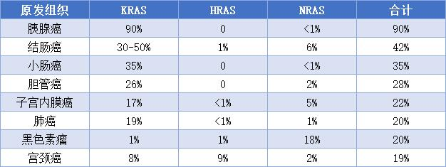 ,KRAS基因突变占RAS基因突变总数的86%。KRAS是RAS家族中致癌突变研究数据,胰腺癌达90%、结肠癌达30-50%、小肠癌达35%的癌症突发率最高。