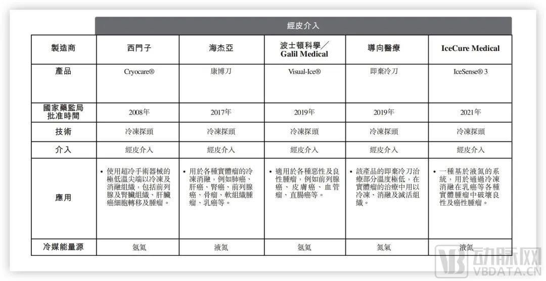 目前国内上市的肿瘤冷冻消融产品,图源招股书