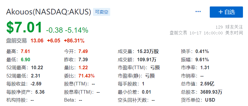 美元/股的价格收购Akouos(总计约4.87亿美元),外加每股不超过