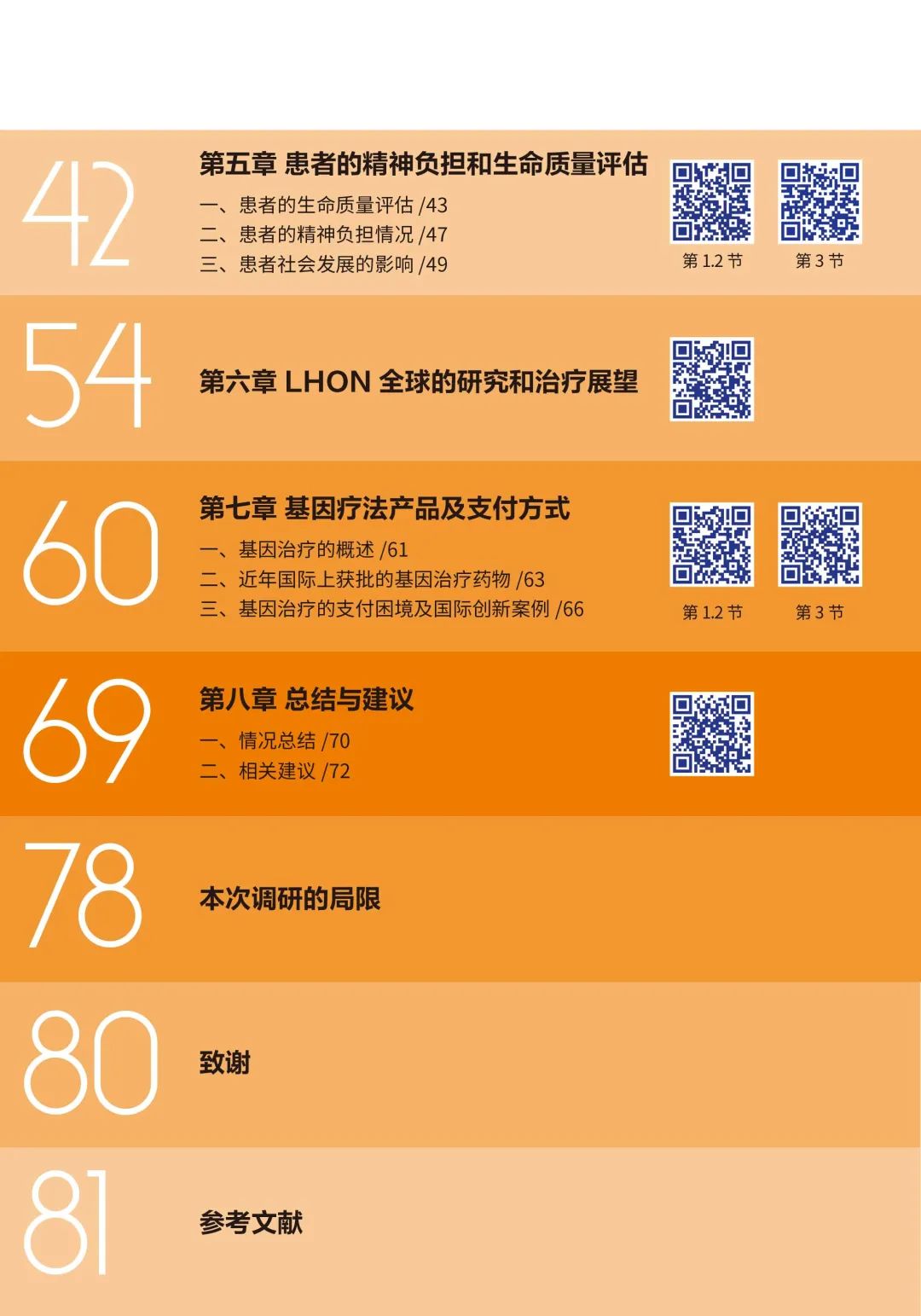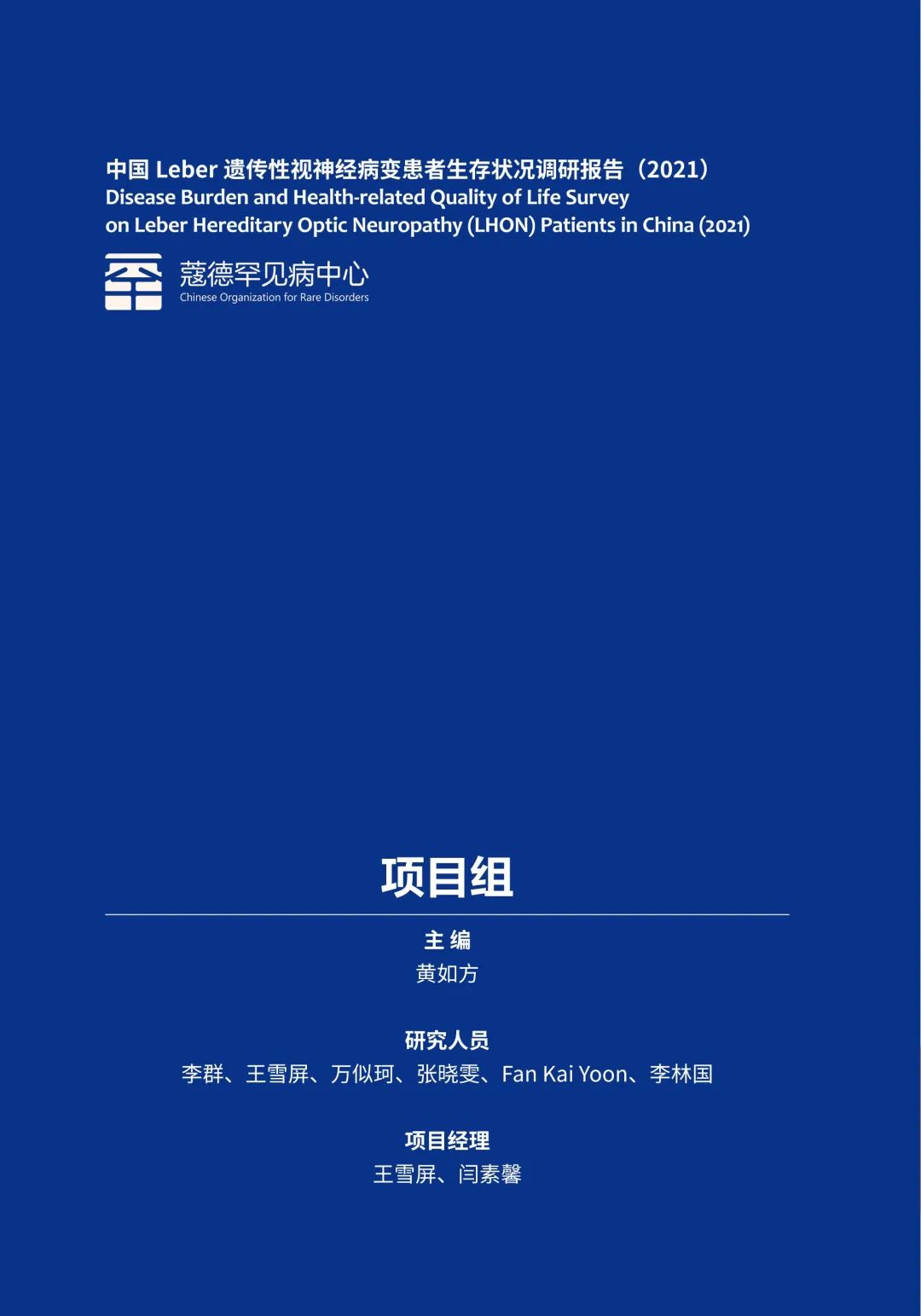 感谢王雪屏、万似珂、张晓雯、Fan Kai Yoon、李林国和李群等六位研究员为报告的撰写付出时间和精力,我们看到了他们身上的专业素养、协作精神、公益之心。特别感谢金雪晶教授和朱娅莉女士在患者生命质量评估方面的专业指导,胡嘉浩、蓝丰颖和倪家昊在早期项目执行中的参与和支持,以及刘畅、闫素馨、王雪屏和李群为项目的顺利完成承担了协调工作以及报告的统稿工作。感谢国内首家眼科基因治疗药物研发公司纽福斯生物支持。
