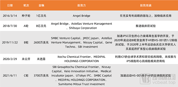 发展至今,Heartseed已完成过5轮融资,最高融资金额达3700万美元,投资机构包括Angel Bridge、Astellas Venture Management、涉谷工业株式会社、SBI Investment、JMDC Japan、Gene Techno Science、SMBC Venture Capital等知名投资机构。