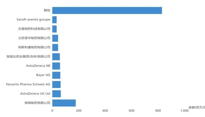 图2:抗肿瘤药TOP10企业样本药店销售情况