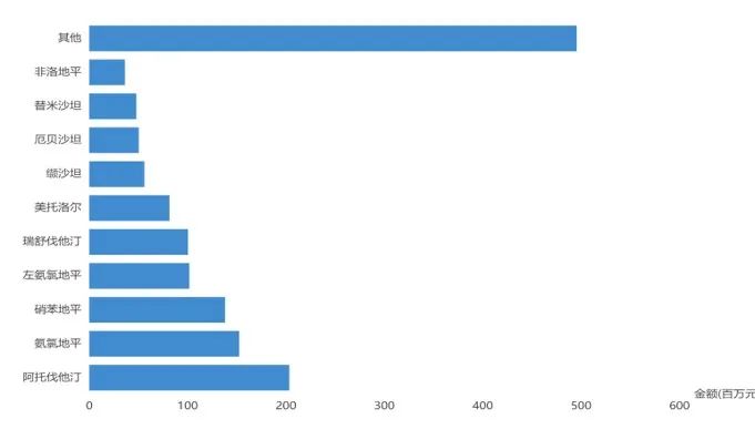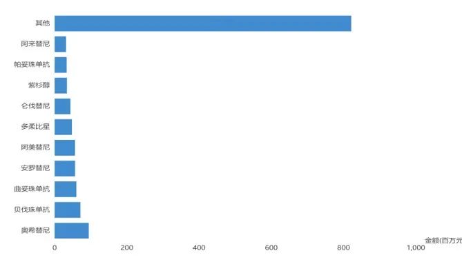 图1:抗肿瘤药TOP10药品(通用名)样本药店销售情况