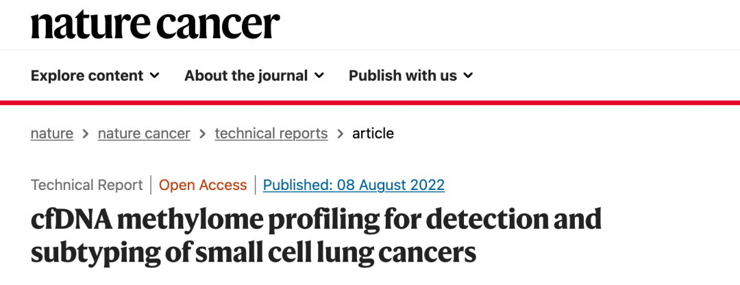 该文章发表在《Nature Cancer》上,原文题目为“cfDNA methylome profiling for detection and subtyping of small cell lung cancers”。