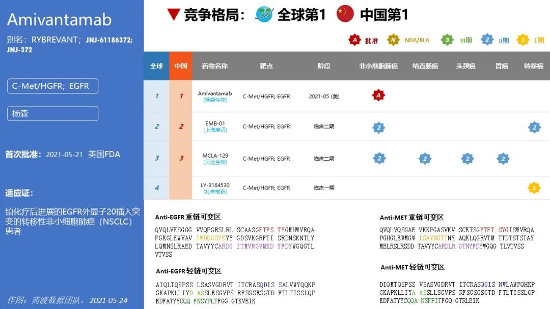 Amivantamab详情及靶向c-MET/HGFR、EGFR的双抗药物,见下图: