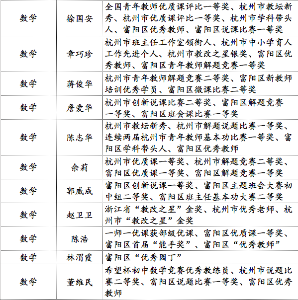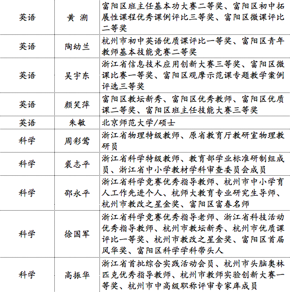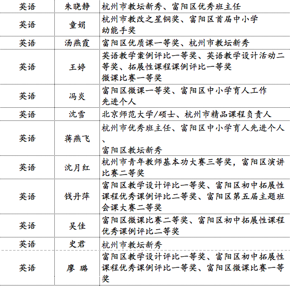 教师老中青三代结构合理,平均年龄34岁,正处于年富力强的黄金职业期;每门大学科均有特级教师领衔把关,超过一半的教师为省市区教坛新秀或优质课、基本功、教学技能比赛区一等奖以上获得者。