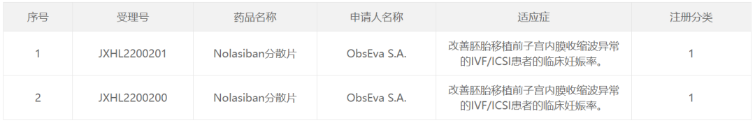 10月12日,中国国家药监局药品审评中心(CDE)官网公示,一款名为nolasiban分散片的1类新药获批临床,拟开发用于改善胚胎移植前子宫内膜收缩波异常的体外受精/卵细胞浆内精子注射(IVF/ICSI)患者的临床妊娠率。公开资料显示,这是一款潜在“first-in-class”的口服催产素受体拮抗剂,由ObsEva公司研发,育源生命公司拥有该药在中国的开发和商业化权利。