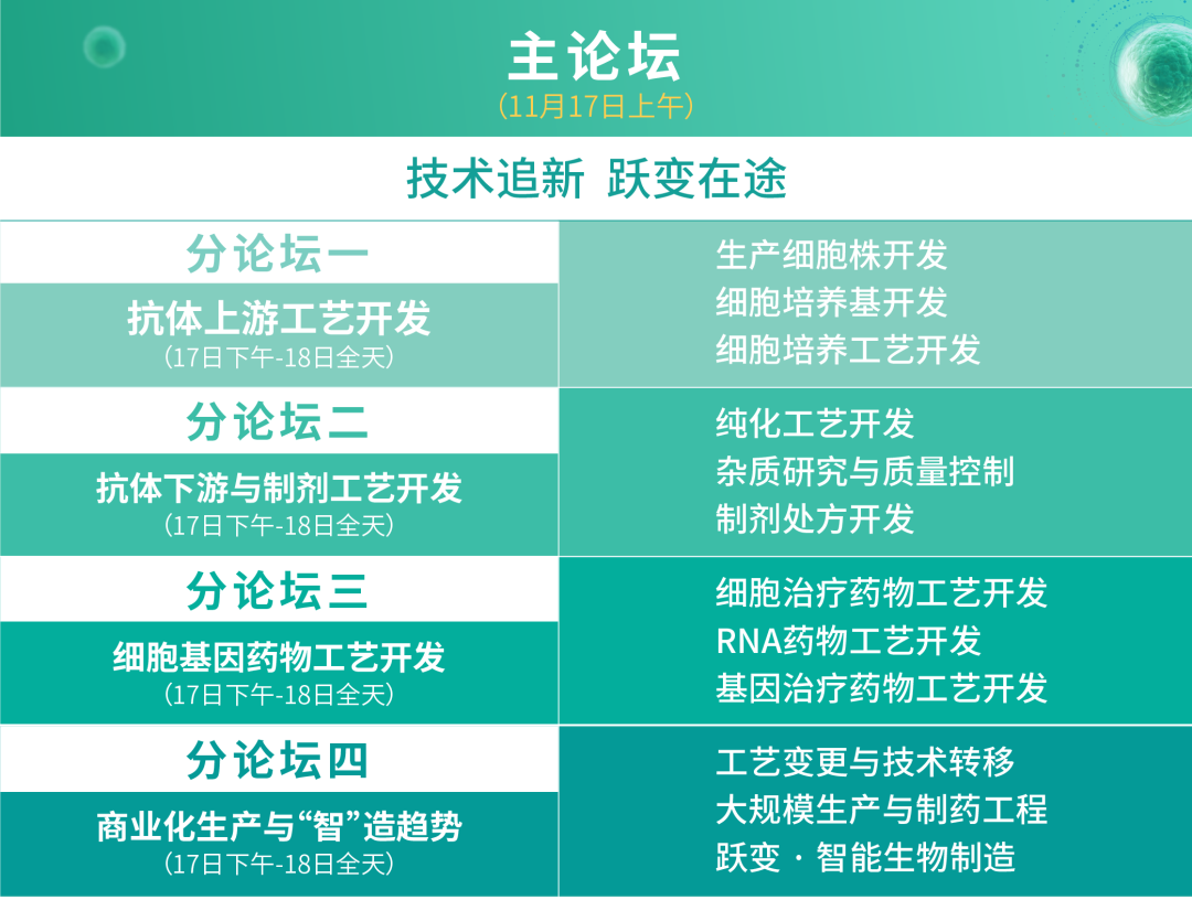 参会人群 | 生物制药行业上游培养工艺、下游纯化工艺、质量分析、CMC、制剂开发、商业化生产、采购、工程等领域。
