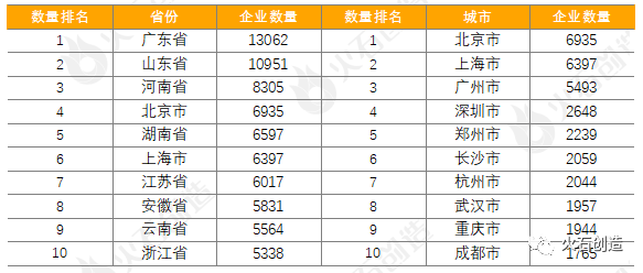 从新增企业地域分布来看,企业数量排名前十的省份为广东省、山东省、河南省、北京市、湖南省、上海市、江苏省、安徽省、云南省、浙江省,占全国新增企业总量的60.31%。企业数量排名前十的城市为北京市、上海市、广州市、深圳市、郑州市、长沙市、杭州市、武汉市、重庆市、成都市,占全国新增企业总量的26.92%。