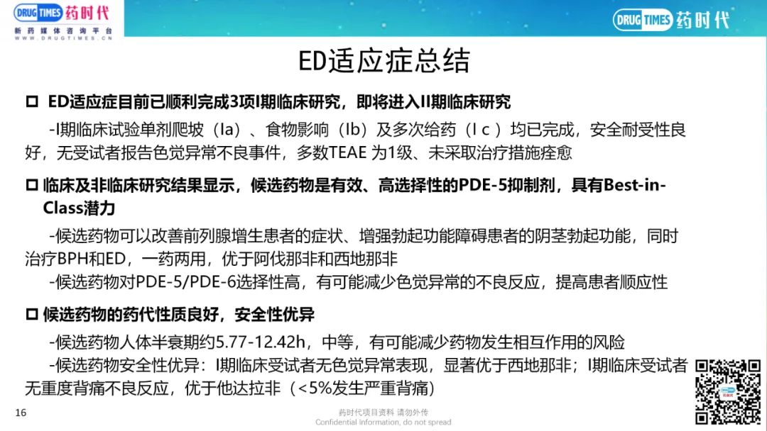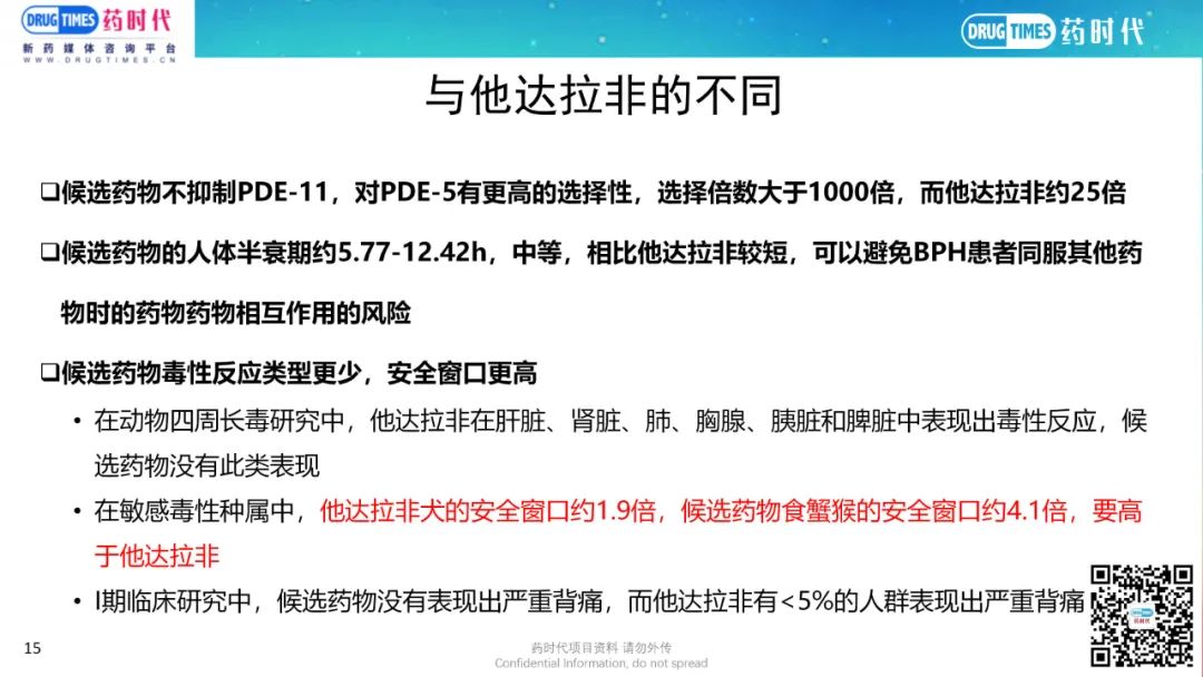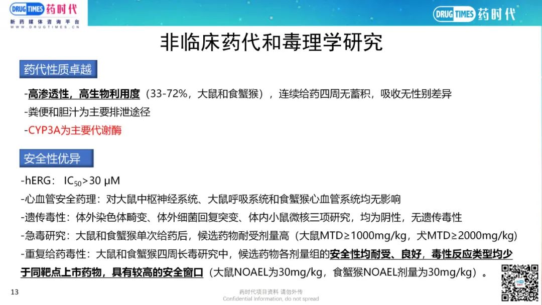 1. 候选药物有更强的选择性,人体半衰期约5.77-12.42h;
