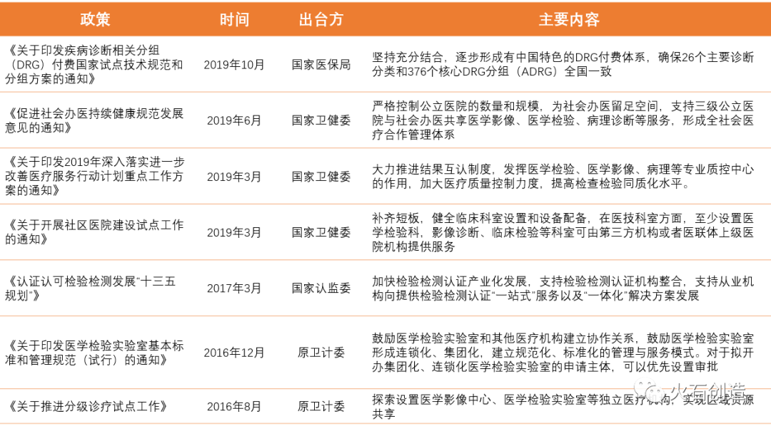 2015年,国务院办公厅发布了《关于推进分级诊疗制度建设的指导意见》,明确提出到2017年基层的医疗占比必须达到65%,实现基层首诊、双向转诊、急慢分治、上下联动的目标。而基层的医疗机构资源短缺、分布分散,资金投入有限,这就意味着它缺少较为大型的检测仪器和服务的能力。而区域的独立医学实验中心恰好满足了这部分的检测需求,因而得到了快速发展,所以分级诊疗是驱动ICL的主要政策之一。
