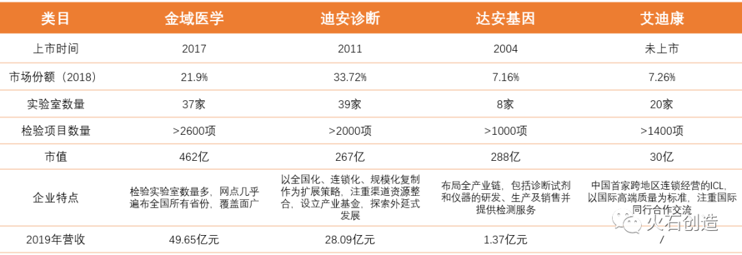 表1 国内独立医学实验室分类